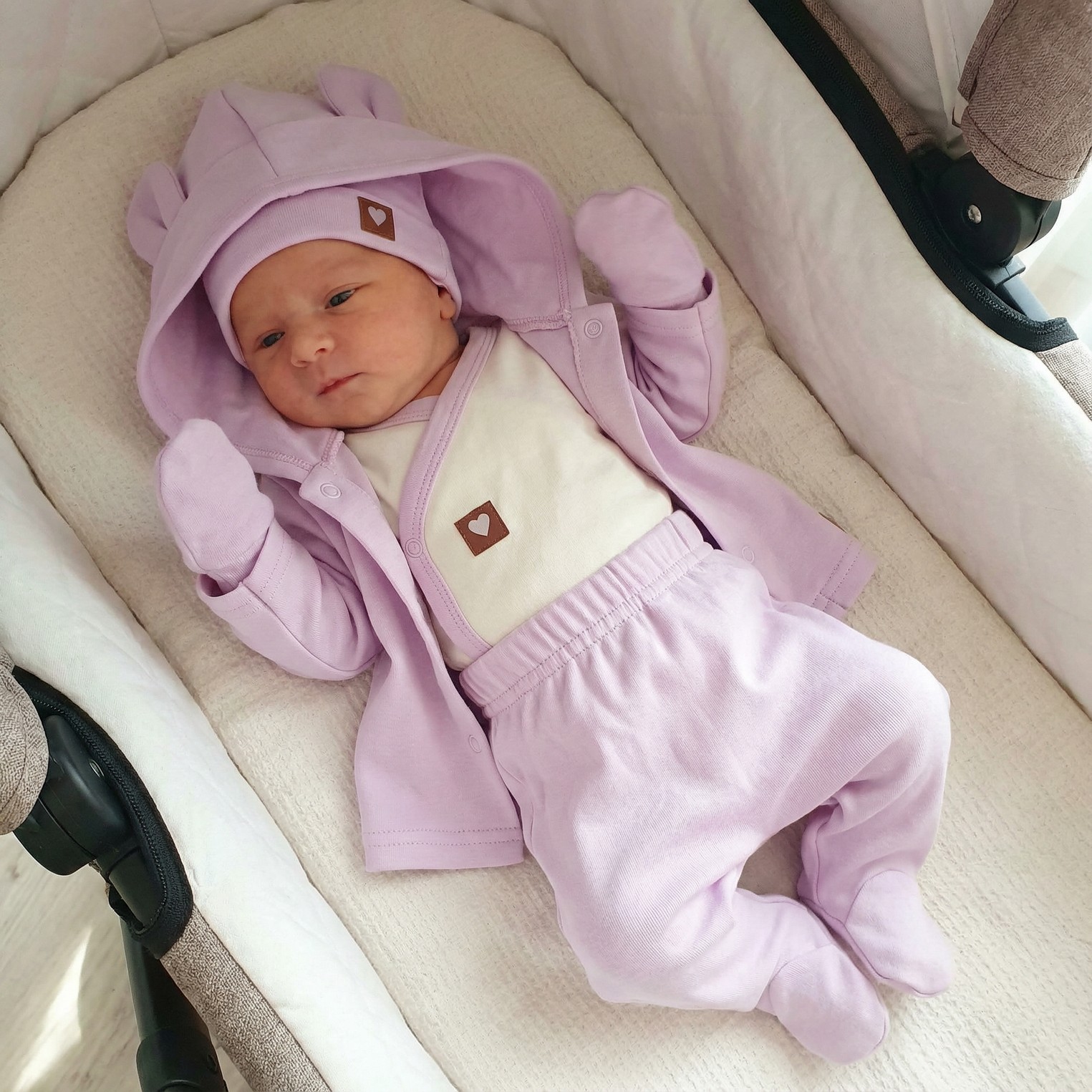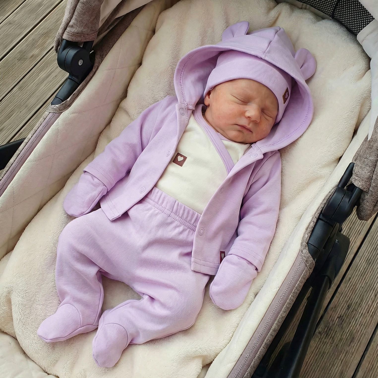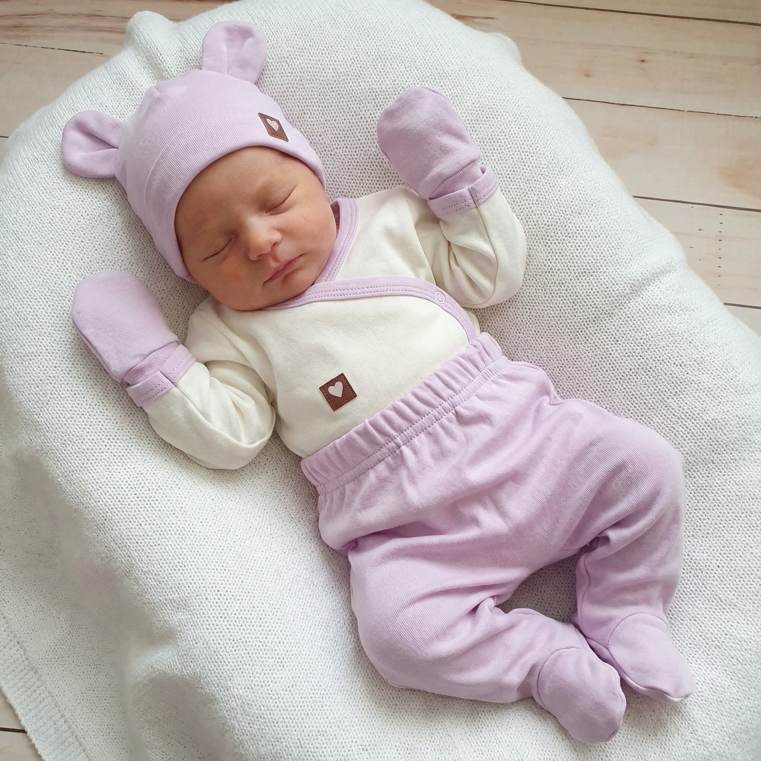 Zloženie: Mikina a nohavice, body, čiapka a rukavičky: 100% bavlna