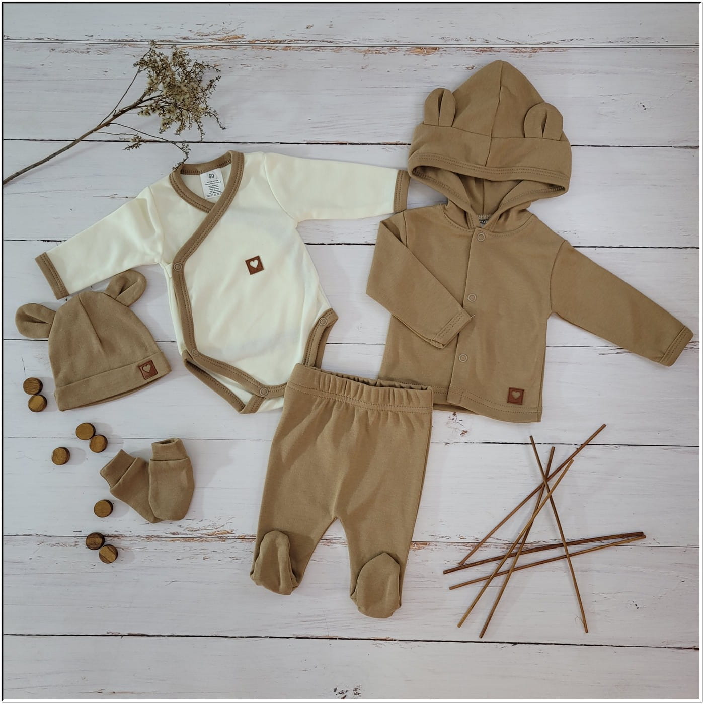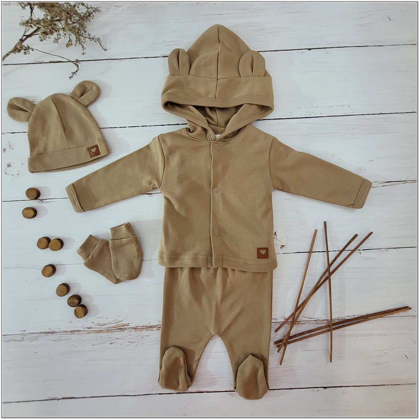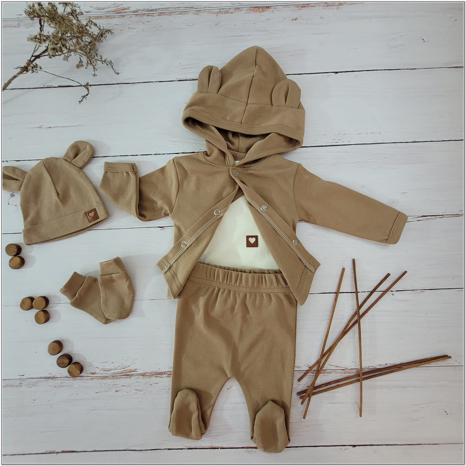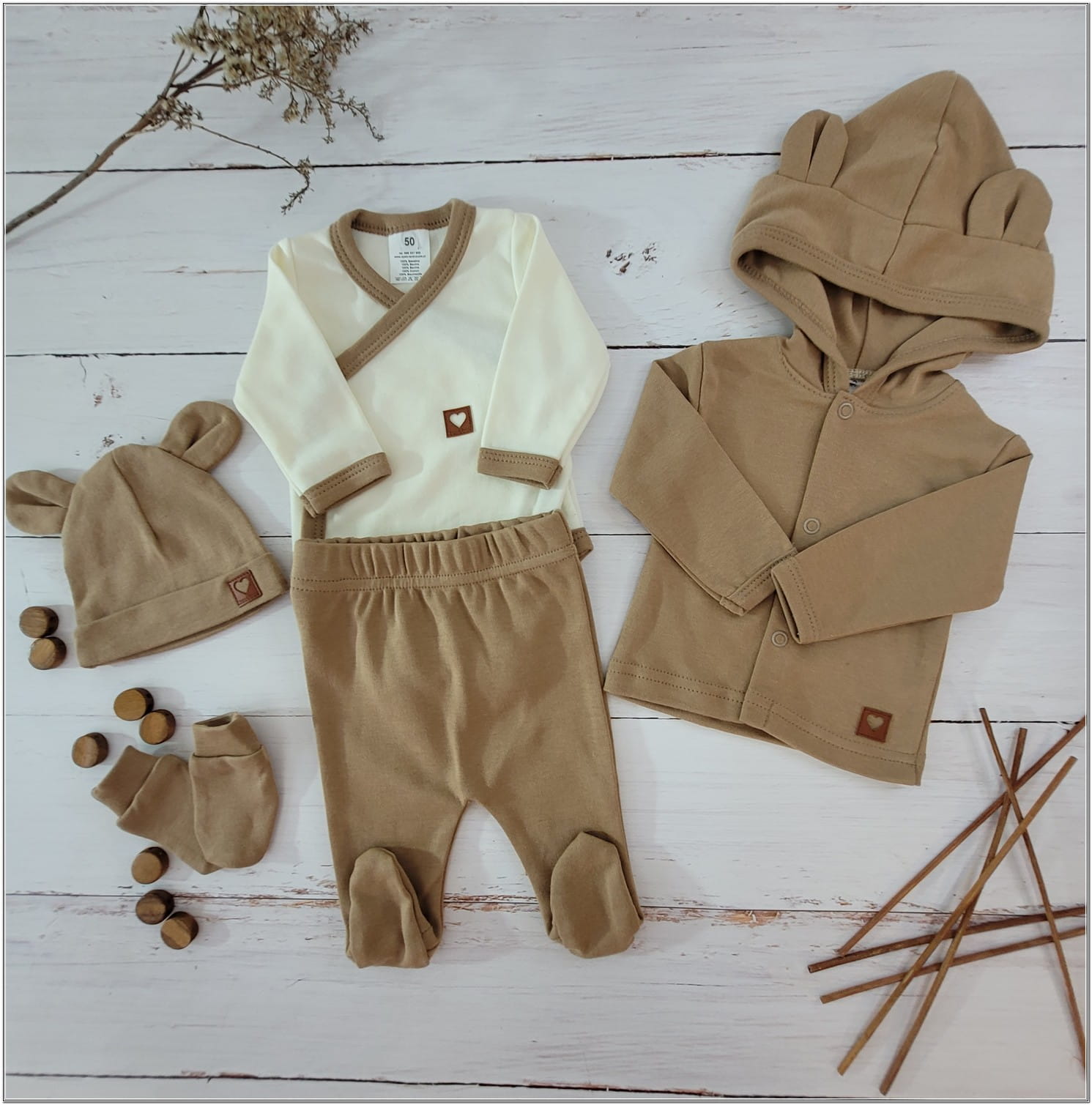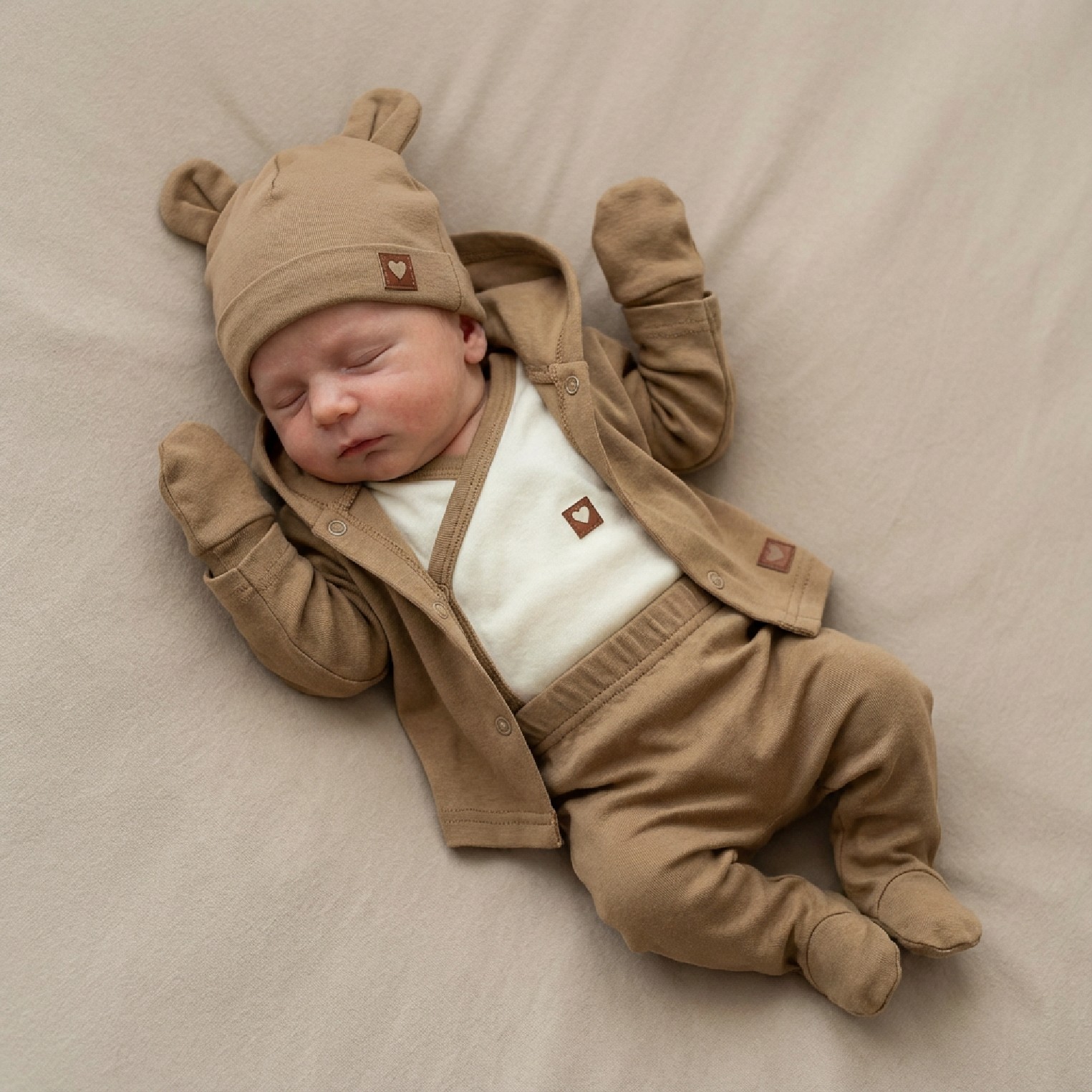 Zloženie: Mikina a nohavice, body, čiapka a rukavičky: 100% bavlna