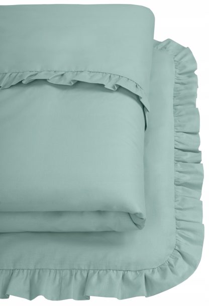 ➡️ Obliečka na vankúš je z troch strán lemovaná volánikmi . Obliečka na paplón má na vrchnej strane prišitý ozdobný volánik.